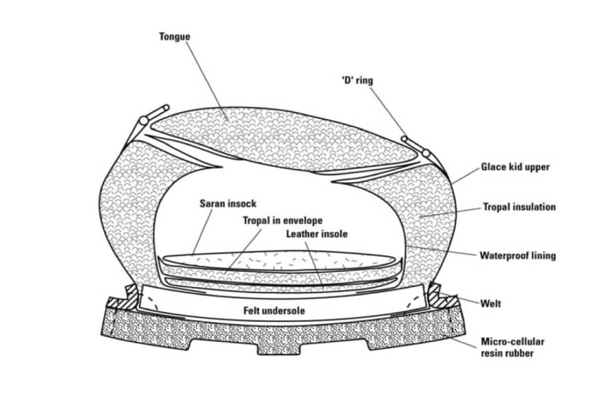 SATRA still holds the original boots in its archives. They’re worn, scarred, and still carry mud on their soles. Cross-sections reveal a layered construction that wouldn’t look out of place in a modern technical breakdown: insulation, structure, protection—no excess, no decoration.